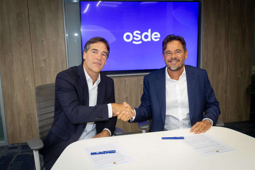 Rafael Silva, Presidente de la URBA, y Cristian García Sarubbi, Director General de OSDE, rubricaron el convenio (Foto: Gonzalo Prados/Prensa URBA).
